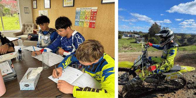 The Dirt Bike Group Therapy programme runs for eight weeks, meeting once per week. Students are carefully selected by Āpiti Hou based on attendance, attitude, and engagement in learning. Together with their tutors and whānau, they commit to the kaupapa.