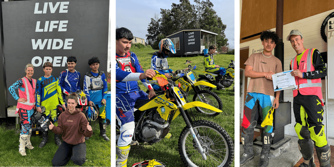 Since 2016, Youth Encounter and EastBay REAP Āpiti Hou have partnered together to change that story. Each year, groups of young people step onto the Live Life Wide Open track through our Youth Encounter Dirt Bike Group Therapy programme. They arrive carrying heavy challenges, often uncertain of themselves and their future. But as the weeks unfold, they discover something new: courage, confidence, and the ability to choose a different line in life.